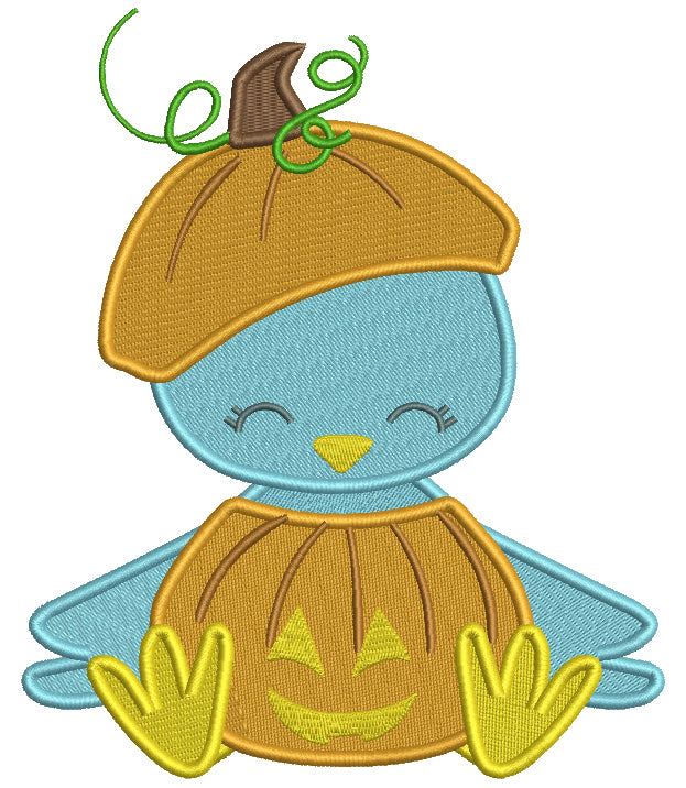 Little Blue Bird Wearing Pumpkin Costume Halloween Filled Machine Embroidery Design Digitized Pattern