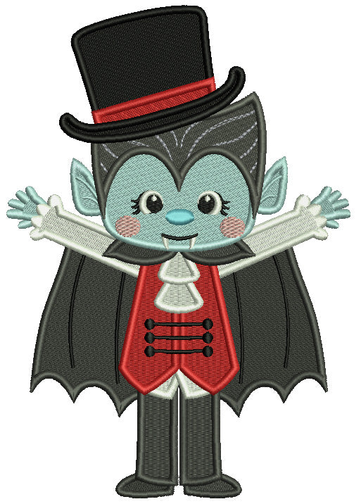 Little Boy Dracula Wearing Big Hat Halloween Filled Machine Embroidery Design Digitized Pattern