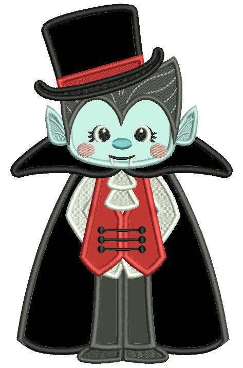 Little Boy Dressed In Dracula Costume Halloween Applique Machine Embroidery Design Digitized Pattern