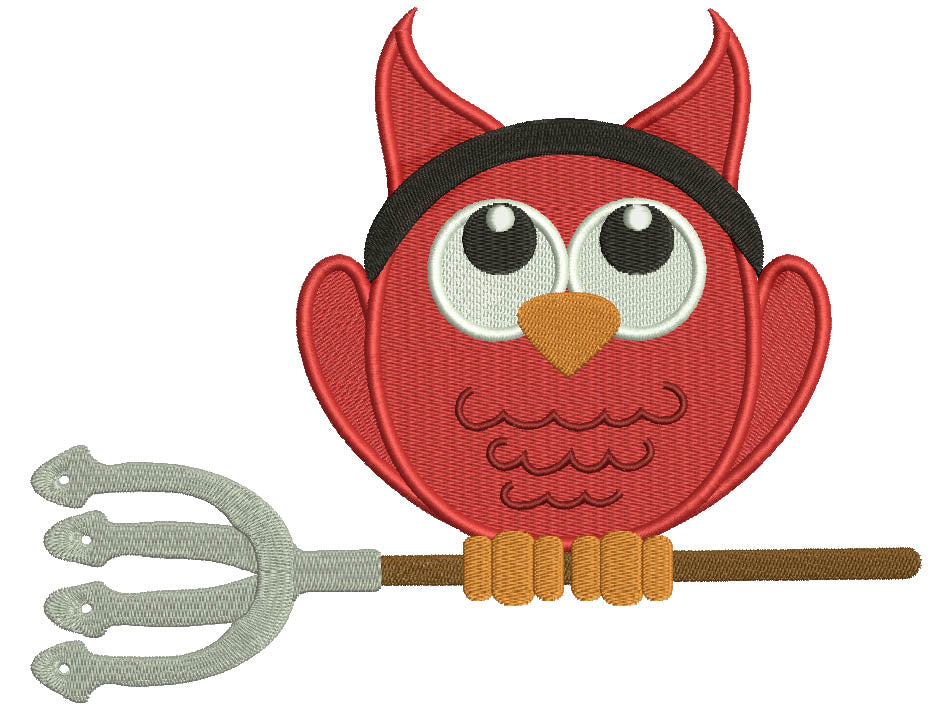 Little Devil Owl Halloween Filled Machine Embroidery Design Digitized Pattern
