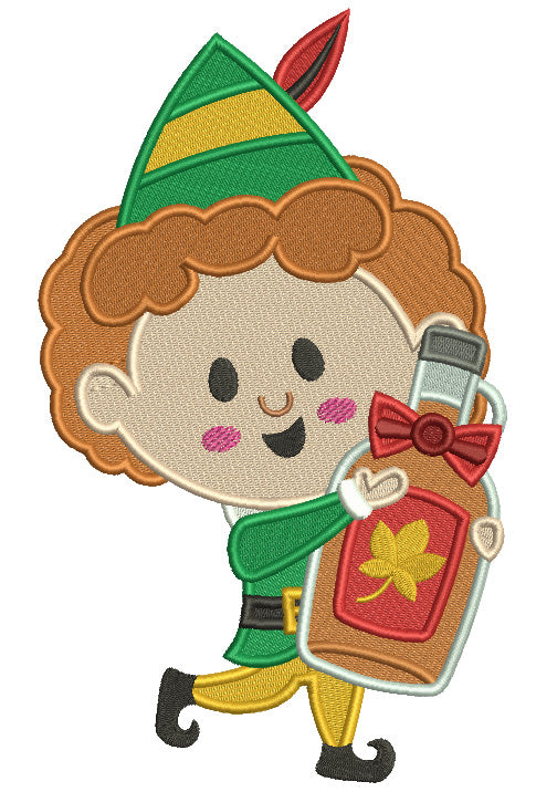 Little Elf Holding a Bottle With Maple Syrop Christmas Filled Machine Embroidery Design Digitized Pattern