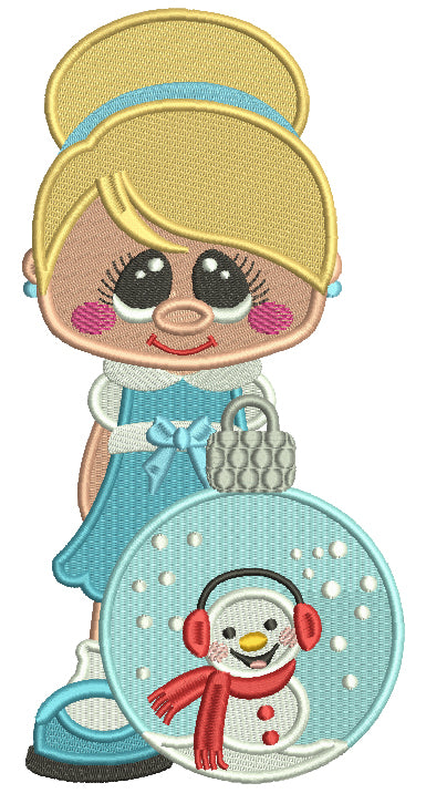 Little Girl With Blue Dress Holding Snowman Christmas Ornament Filled Machine Embroidery Design Digitized Pattern