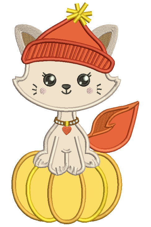 Little Kitten Sitting On The Pumpkin Fall Applique Machine Embroidery Design Digitized Pattern