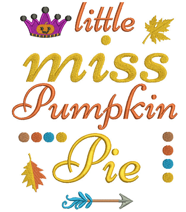 Little Miss Pumpkin Pie Halloween Filled Machine Embroidery Digitized Design Pattern