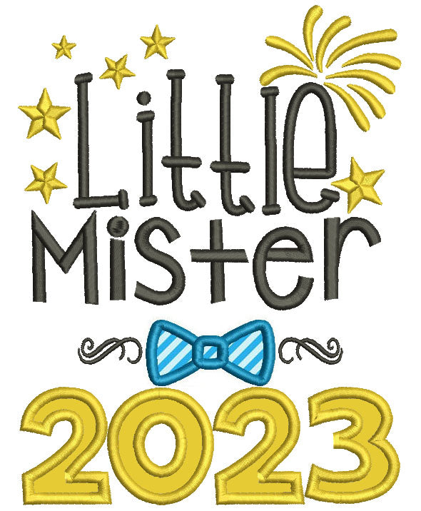 Little Mister 2023 Bow Tie New Year Applique Machine Embroidery Design Digitized Pattern