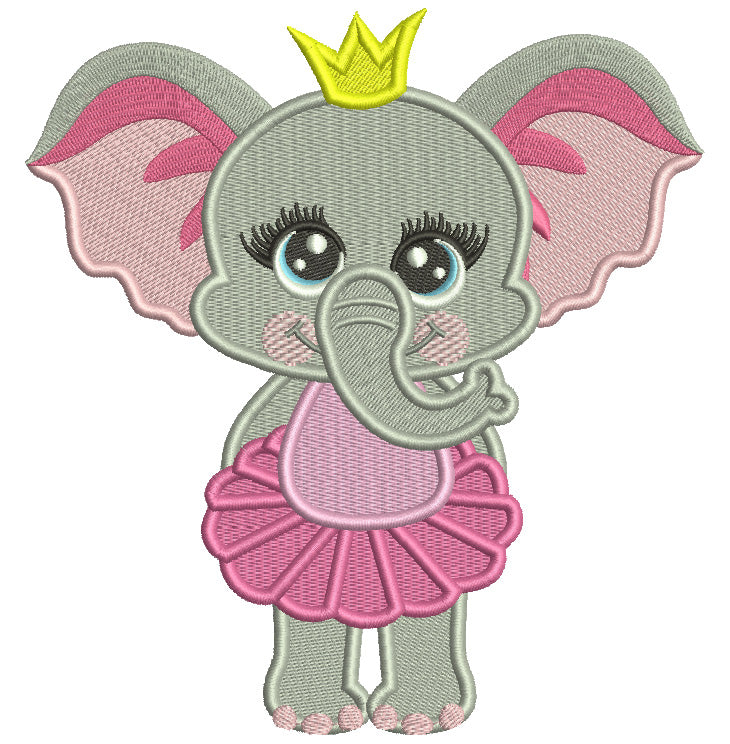 Little Princess Elephant Filled Machine Embroidery Design Digitized Pattern
