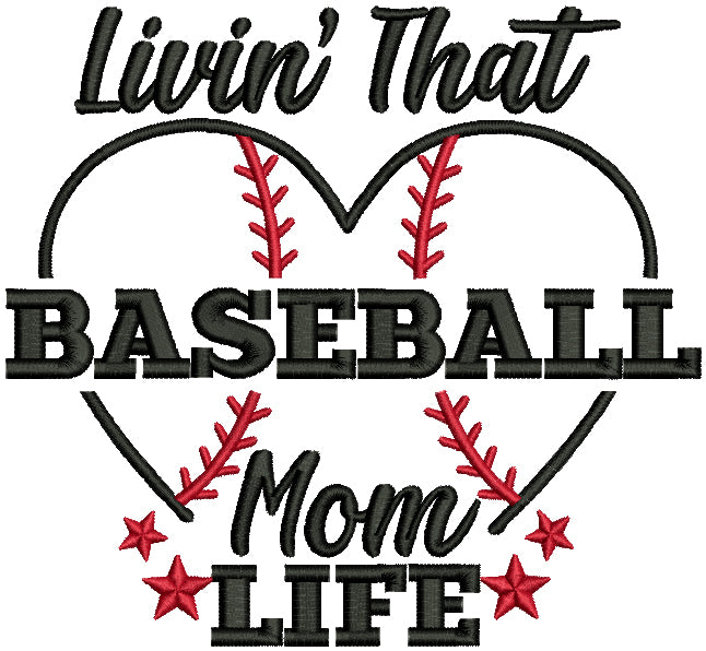 Livin That Baseball Mom Life Sports Filled Machine Embroidery Design Digitized Pattern