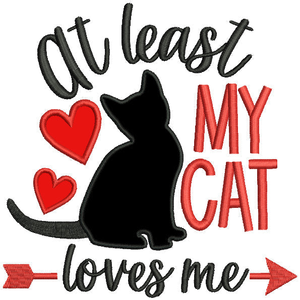 At Least My Cat Loves Me Valentine's Day Applique Machine Embroidery Design Digitized Pattern - 13060