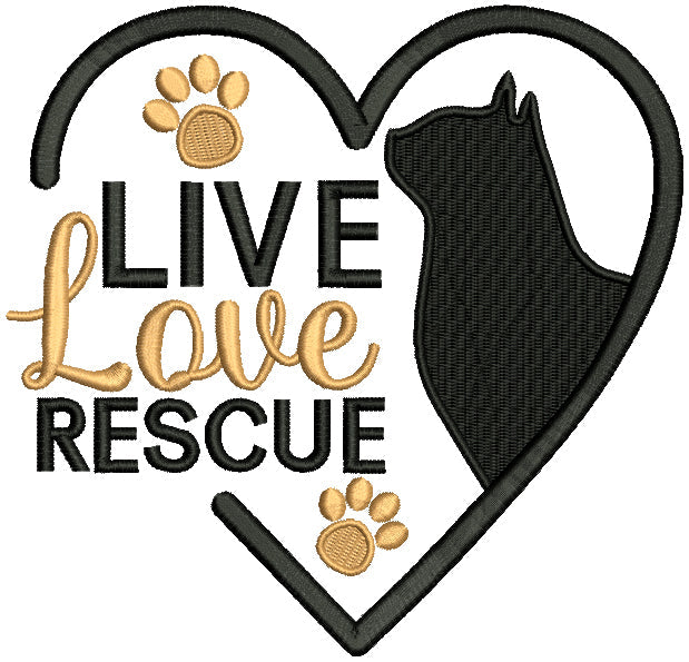 Live Love Rescue Cat Heart Filled Machine Embroidery Design Digitized Pattern - 15339