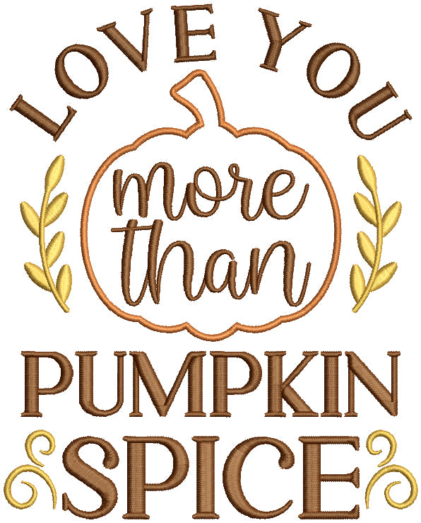 Love You More Than Pumpkin Spice Pumpkin Fall Filled Machine Embroidery Design Digitized Pattern