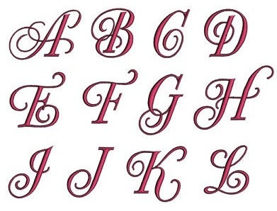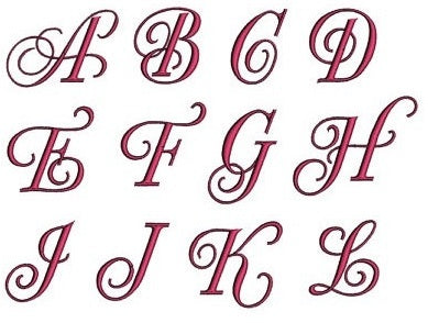 Fancy Curly Machine Embroidery Monogram Font Script 1,2,3 inches - Instant Download - (Upper Case) Machine Embroidery Design
