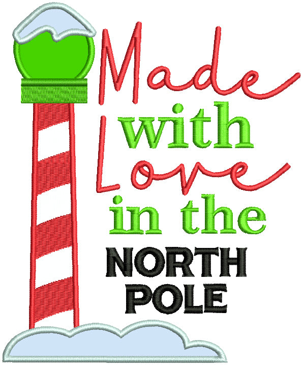Made With Love In The North Pole Christmas Applique Machine Embroidery Design Digitized Pattern