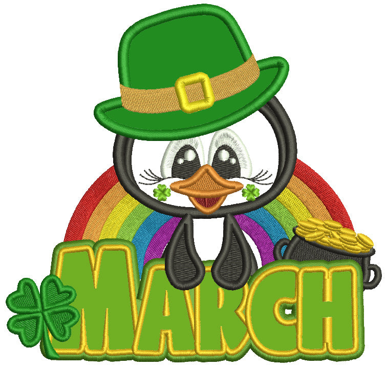 March Penguin Wearing a Big Hat St. Patrick's Day Applique Machine Embroidery Design Digitized Pattern