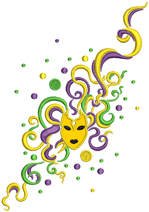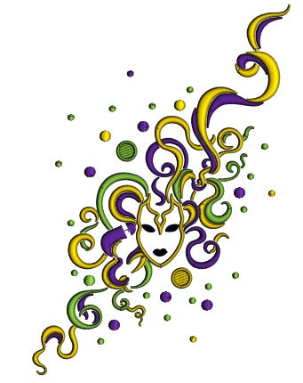 Mardi Gras Fancy Hair Mask Applique Machine Embroidery Design Digitized Pattern