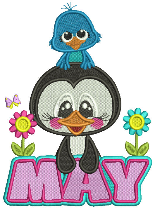 May Penguin And a Bird Filled Machine Embroidery Design Digitized Pattern