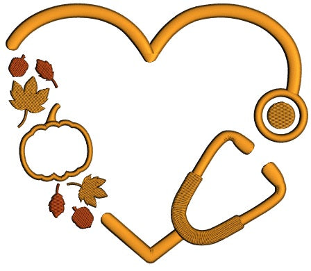 Medical Stethoscope WIth Fall Leaves And Pumpkin Applique Machine Embroidery Design Digitized Pattern