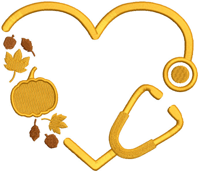 Medical Stethoscope WIth Fall Leaves And Pumpkin Filled Machine Embroidery Design Digitized Pattern