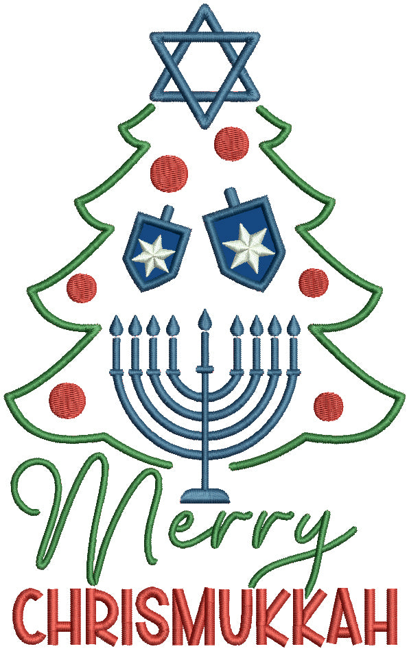 Merry Chrismukkah Christmas Tree And Menorah Applique Machine Embroidery Design Digitized Pattern