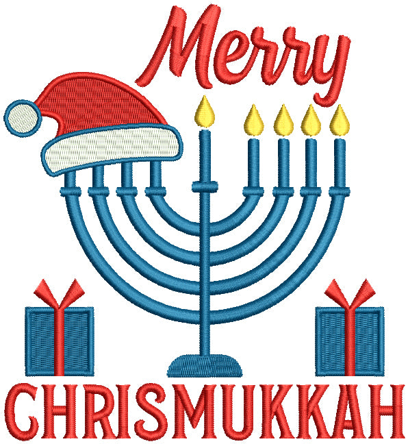Merry Chrismukkah Menorah And Santa's Hat Filled Machine Embroidery Design Digitized Pattern