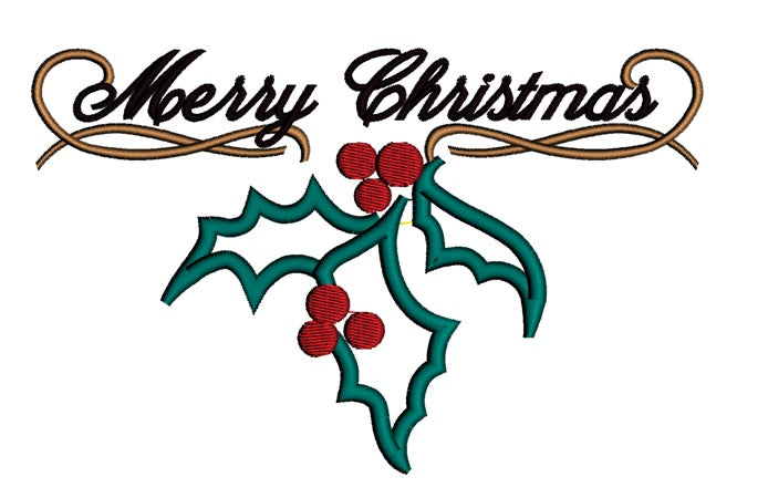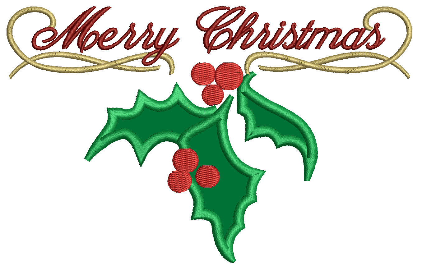 Merry Christmas Leaves Applique Machine Embroidery Digitized Design Pattern