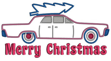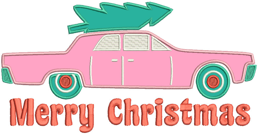 Merry Christmas Car And Tree Applique Machine Embroidery Design Digitized Pattern