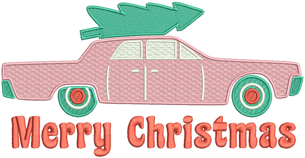 Merry Christmas Car And Tree Filled Machine Embroidery Design Digitized Pattern