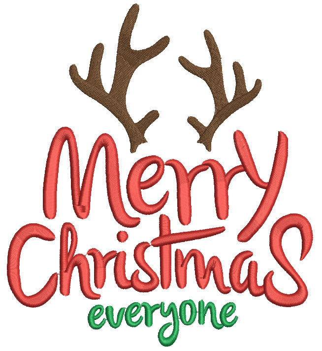 Merry Christmas Everyone Deer Antlers Filled Machine Embroidery Digitized Design Pattern