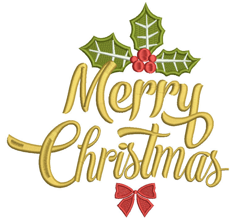 Merry Christmas Green Leaves Filled Machine Embroidery Digitized Design Pattern