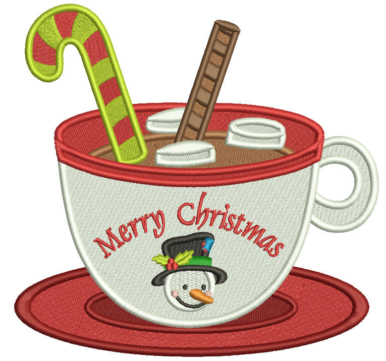 Merry Christmas Hot Cocoa Cup With Snowman Filled Machine Embroidery Design Digitized Pattern