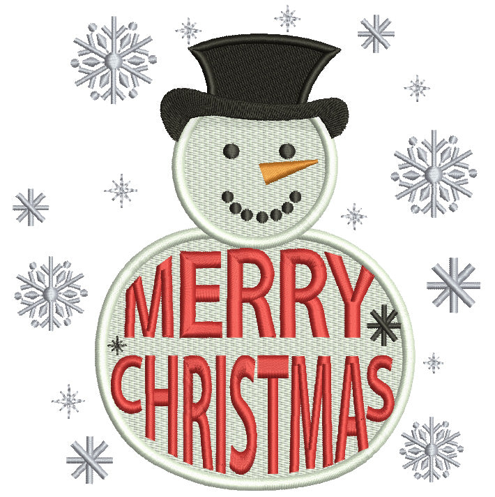 Merry Christmas Snowman Filled Machine Embroidery Digitized Design Pattern
