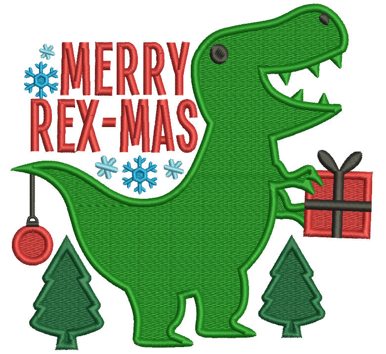 Merry REX-MAS Dinosaur WIth Christmas Gifts Filled Machine Embroidery Design Digitized Pattern