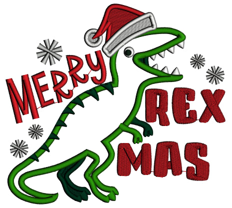 Merry Rexmas Trex Christmas Applique Machine Embroidery Design Digitized Pattern