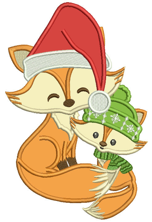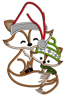 Mommy And Baby Fox Wearing Winter Hats Christmas Applique Machine Embroidery Design Digitized Pattern