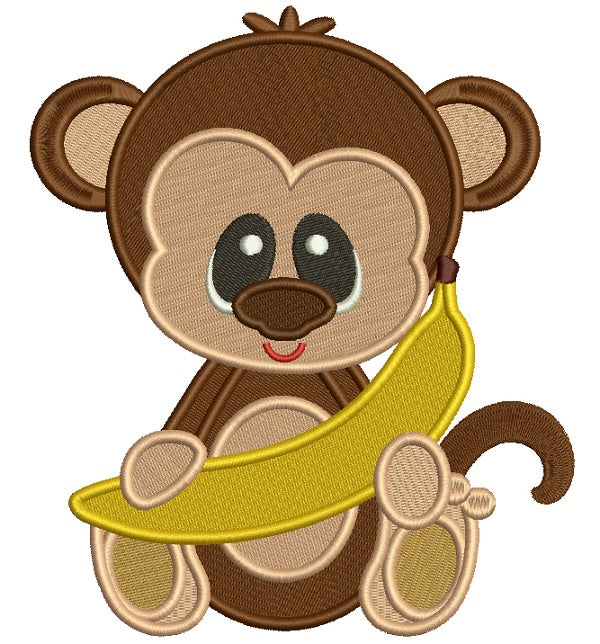 Monkey With a Banana Filled Machine Embroidery Design Digitized Pattern