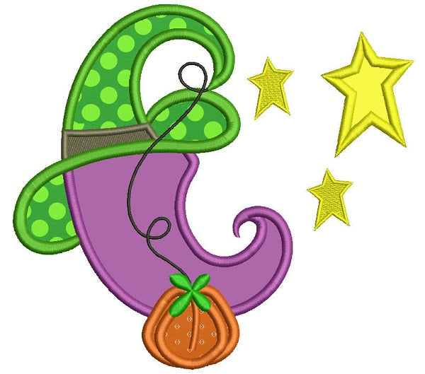 Moon Wearing Witch's Hat Halloween Applique Machine Embroidery Design Digitized Pattern