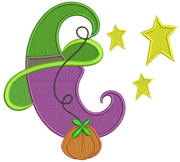 Moon Wearing Witch's Hat Halloween Filled Machine Embroidery Design Digitized Pattern