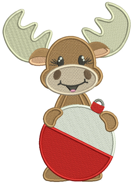 Moose Holding Christmas Ornament Filled Machine Embroidery Design Digitized Pattern