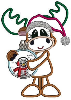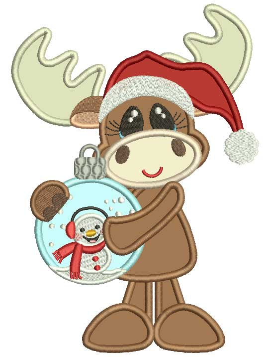 Moose Holding Ornament With a Snowman Christmas Applique Machine Embroidery Design Digitized Pattern