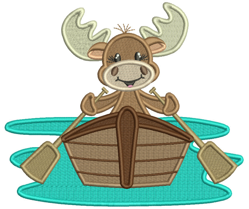 Moose Rowing a Boat Filled Machine Embroidery Design Digitized Pattern