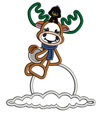 Moose Sitting a Snow Christmas Applique Machine Embroidery Design Digitized Pattern