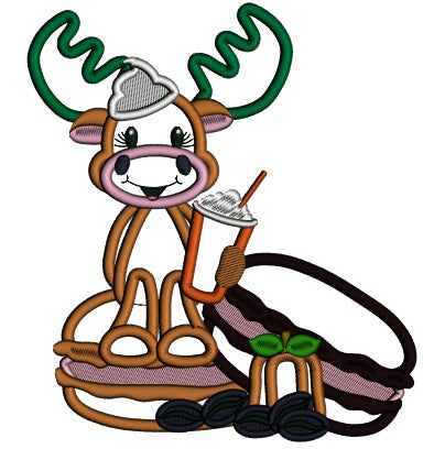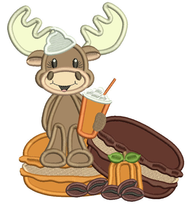 Moose Sitting on a Donut Fall Applique Thanksgiving Machine Embroidery Design Digitized Pattern
