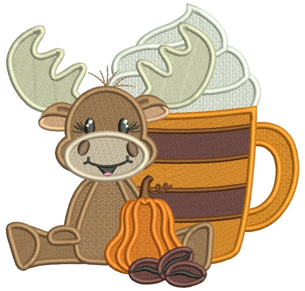 Moose With a Big Coffee Cup Fall Filled Thanksgiving Machine Embroidery Design Digitized Pattern