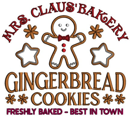 Mrs. Clause's Bakery Gingerbread Cookies Christmas Applique Machine Embroidery Design Digitized Pattern