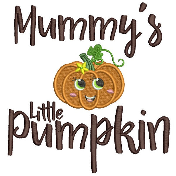 Mummy's Little Pumpkin Halloween Filled Machine Embroidery Design Digitized Pattern
