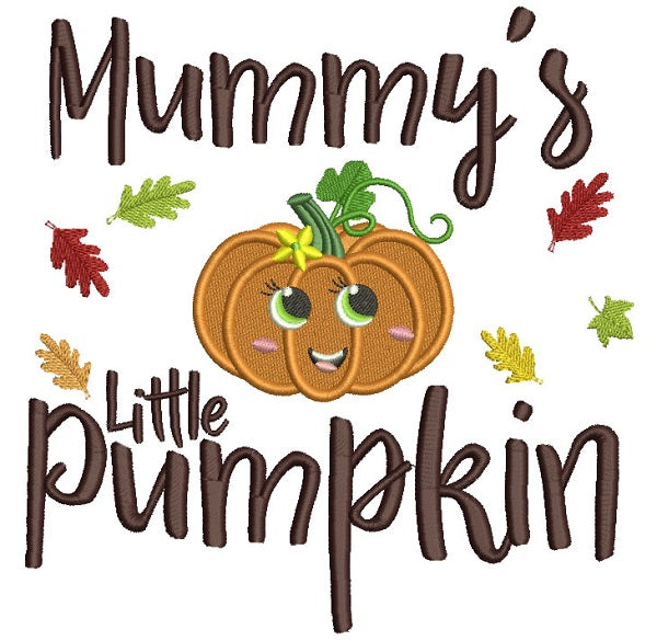 Mummy's Little Pumpkin With Leaves Filled Machine Embroidery Design Digitized Pattern