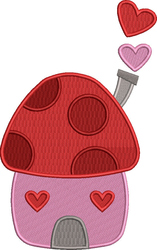 Mushroom House With Hearts Valentine's Day Love Filled Machine Embroidery Design Digitized Pattern
