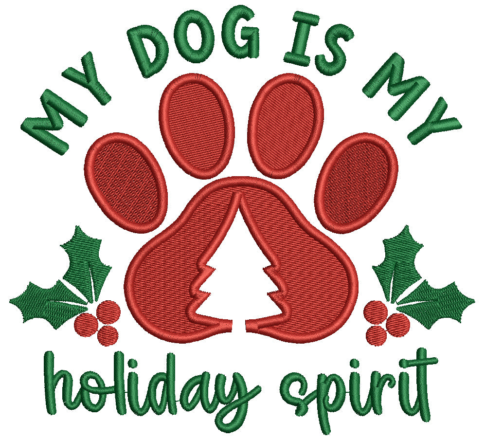My Dog Is My Holiday Spirit Christmas Filled Machine Embroidery Design Digitized Pattern