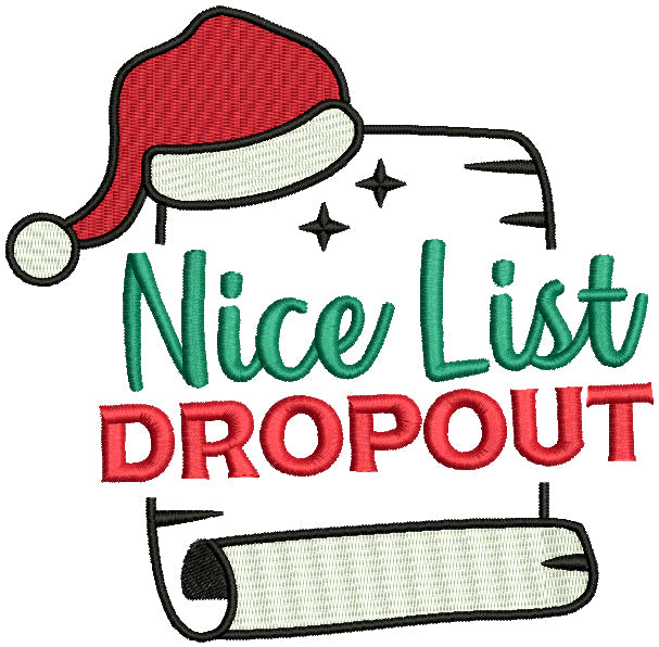 Nice List Dropout Christmas Filled Machine Embroidery Design Digitized Pattern