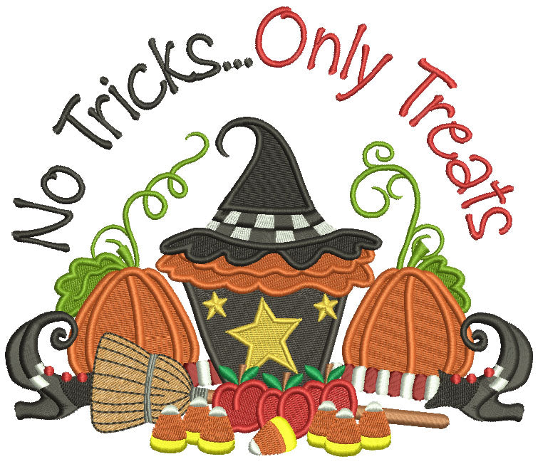 No Tricks Only Treats Halloween Filled Machine Embroidery Design Digitized Pattern