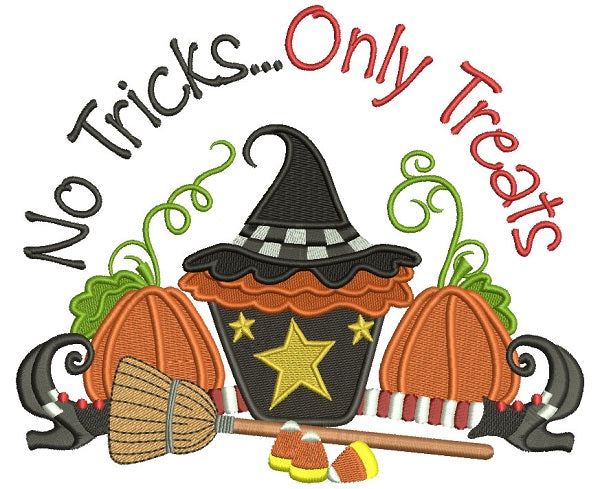 No Tricks Only Treats Without Apples Halloween Filled Machine Embroidery Design Digitized Pattern
